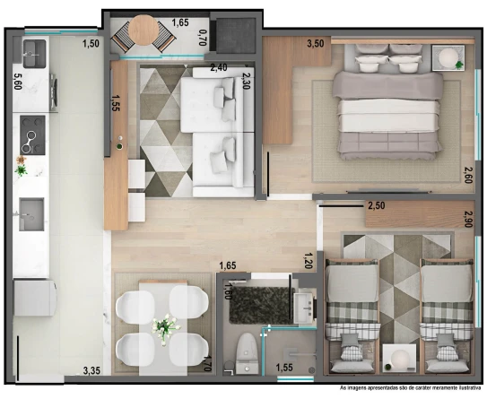 Com 45,73 m² privativos, esse imóvel em Sarandi possui:
